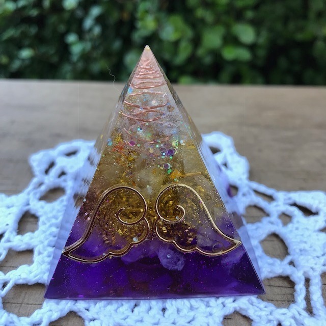 ご覧いただきありがとうございます♪ オルゴナイト「天使の羽根シリーズ」のミカエルです。 サイズは5㎝×5㎝×5㎝ クリスタルポイントと、 水晶のさざれ、 アメジストのさざれ 銅、黄銅、 その他封入物が色々入っています。 エンジェルの優しさがあなたを包み込んでくれます。 椅子の下や、ベッドの脇、布団の近くに置くのもおすすめです。 寝室の場合、頭の近くではなく、足元のほうに置きましょう。 オルゴナイトとは、自然界に存在する生命エネルギーを吸収し、ポジティブなオルゴン・エネルギーを発生させるといわれている装置です。環境中のネガティブで有害な電磁波エネルギーを無害化し、さらにポジティブなエネルギーに変換するとされています。また、家やオフィス、土地などに残存する人の悪い念(ネガティブ・エモーション)を中和するとも言われています。 ★ご理解いただきたいこと ・レジンを使用しているので、どうしても表面に凸凹している部分があります。 気泡が入っていることをご了承ください。 ・ハンドメイド&天然石使用のため多少のゆがみや傷などあります。 ・パソコンモニターや部屋の明かり等で画像見本とわずかな違いがある場合があ ります。 ・人によって効果が変わります。 必要とされる方と良いご縁が結ばれますように☆ ありがとうございます♪ *イベントや他のショップでも並行して販売しております。 在庫切れの場合はご了承ください。