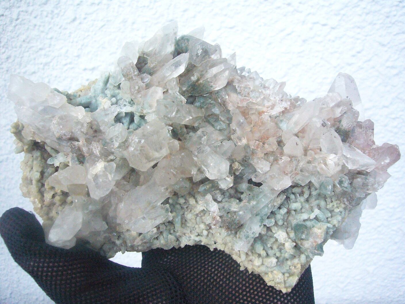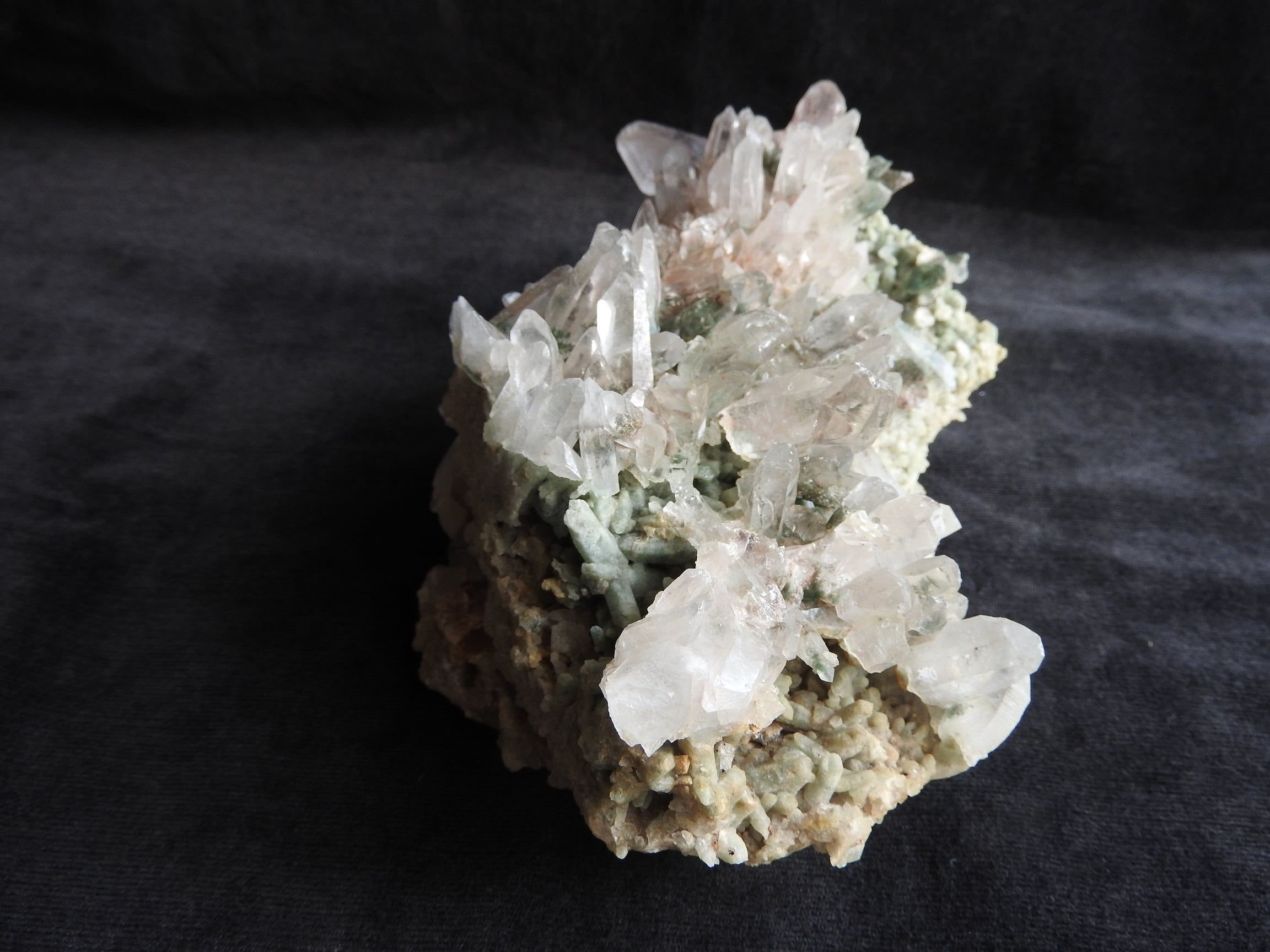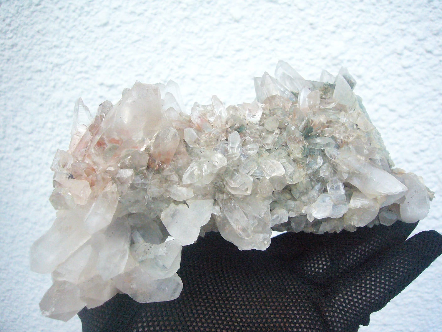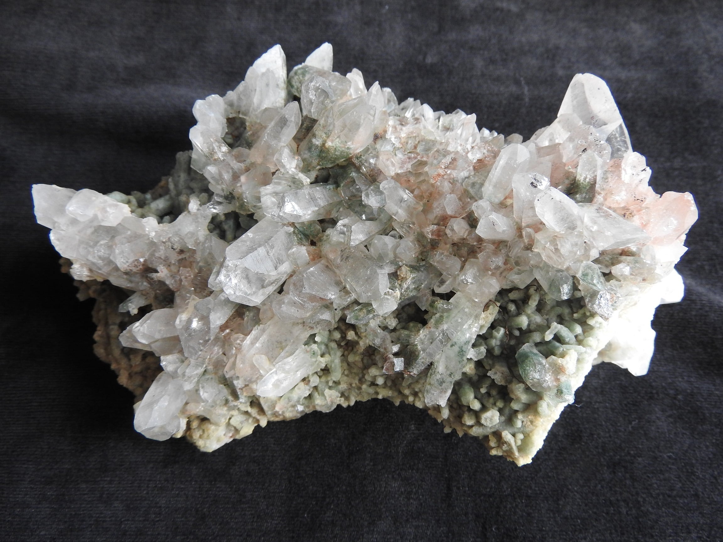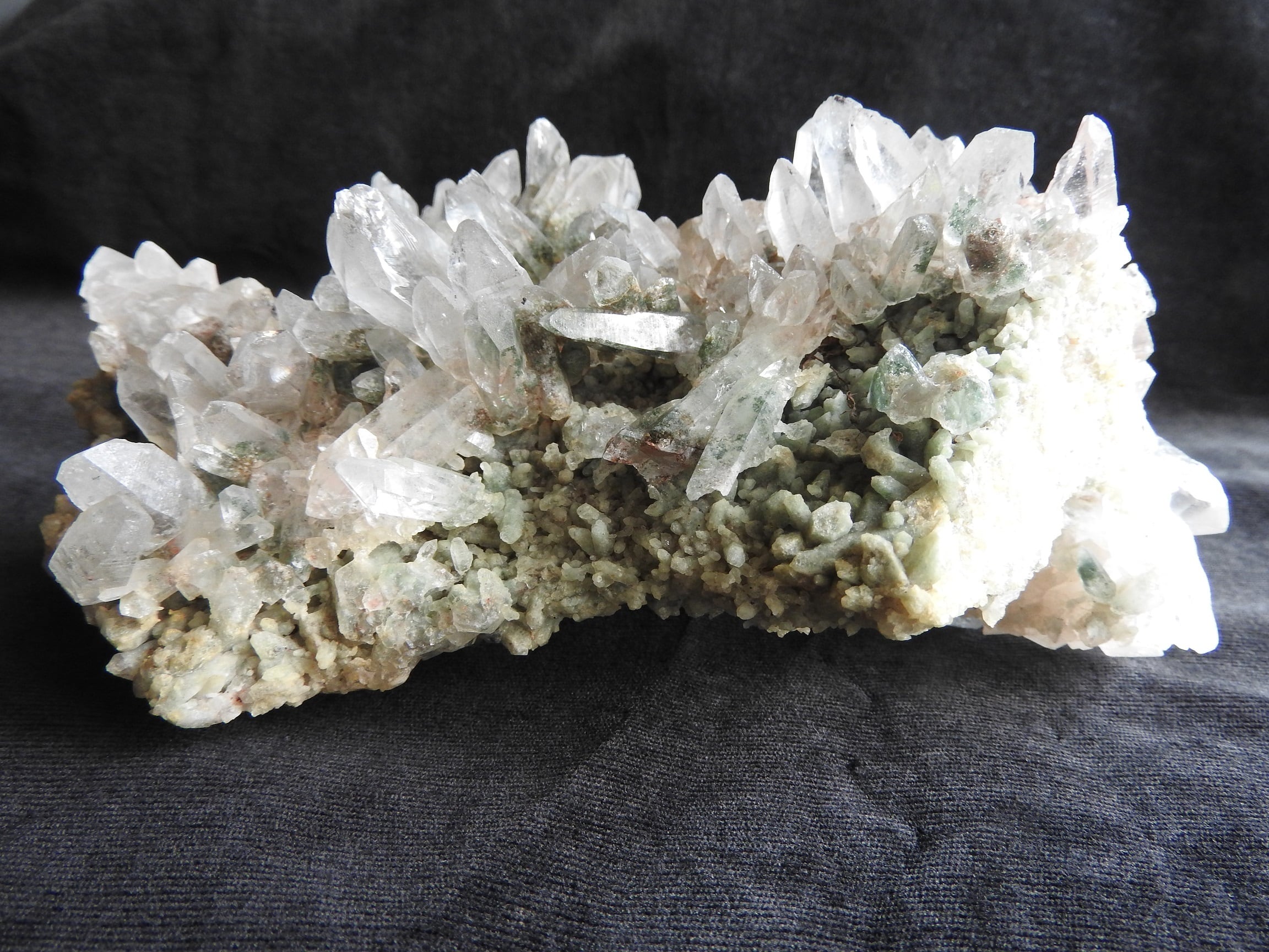 こちらはガネーシュヒマール産水晶 クローライト入り(緑泥岩)ヒマラヤ水晶のクラスターです。