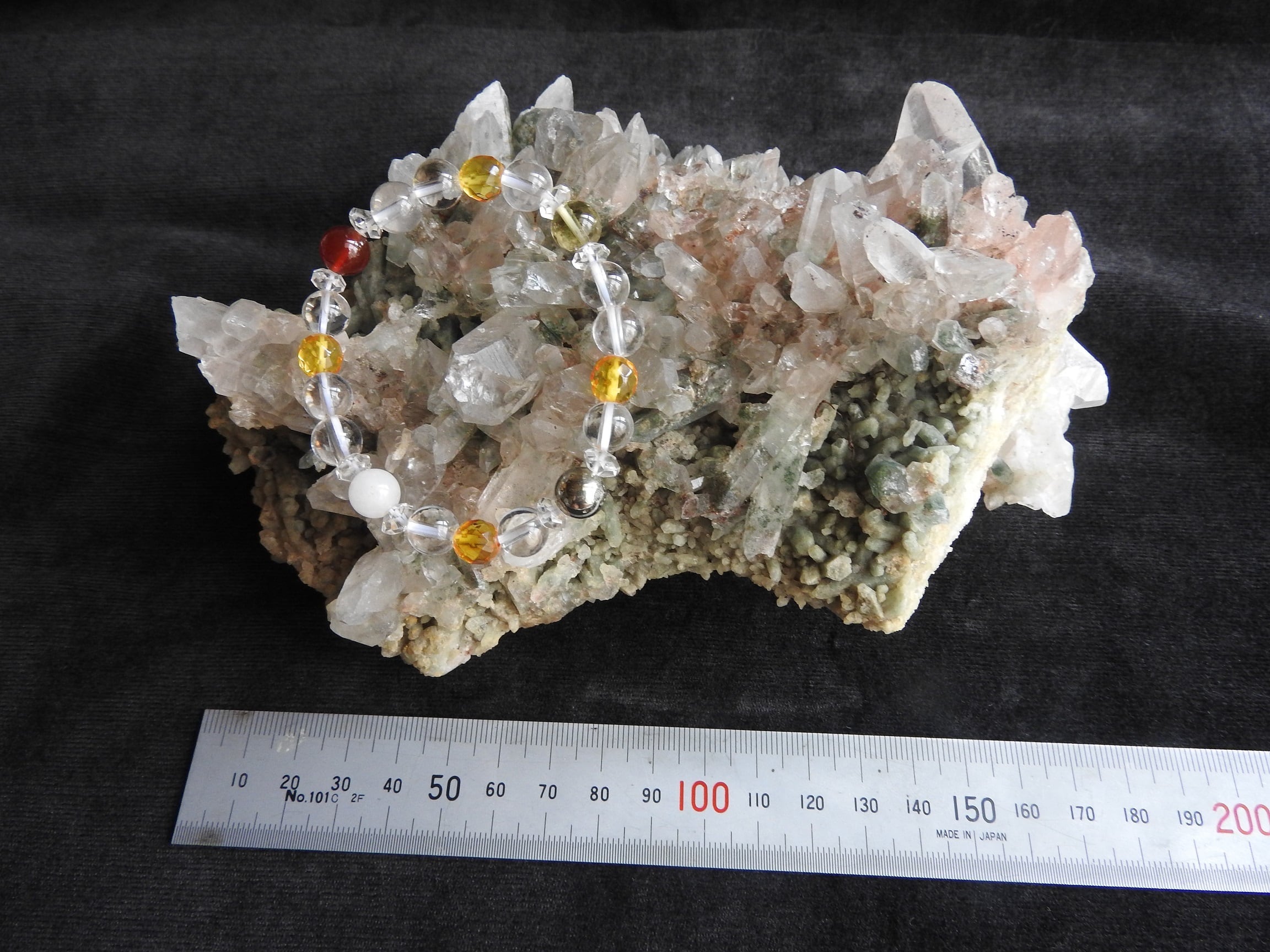 (サイズ比較のため上に乗せているブレスレットはレディースサイズ8㎜玉です。)