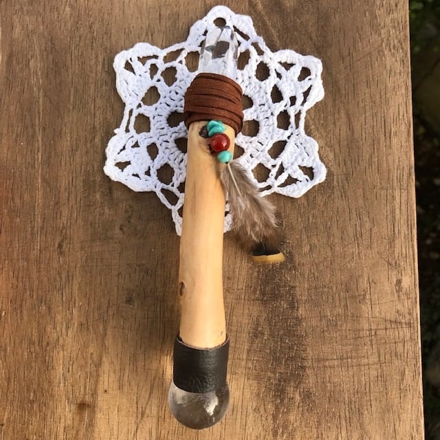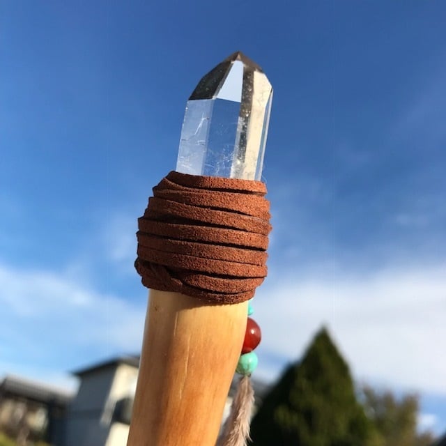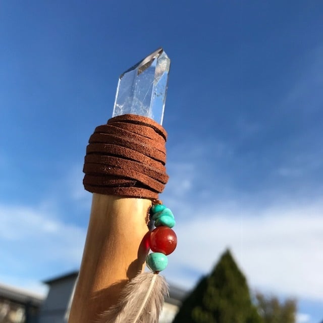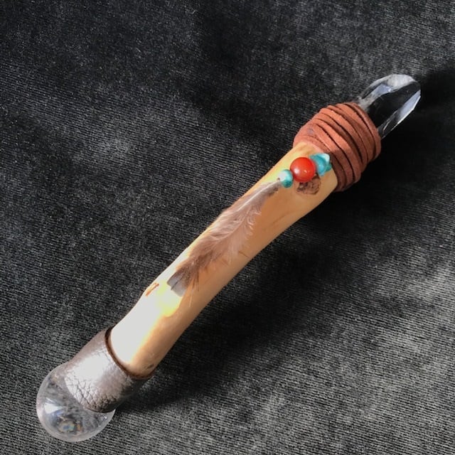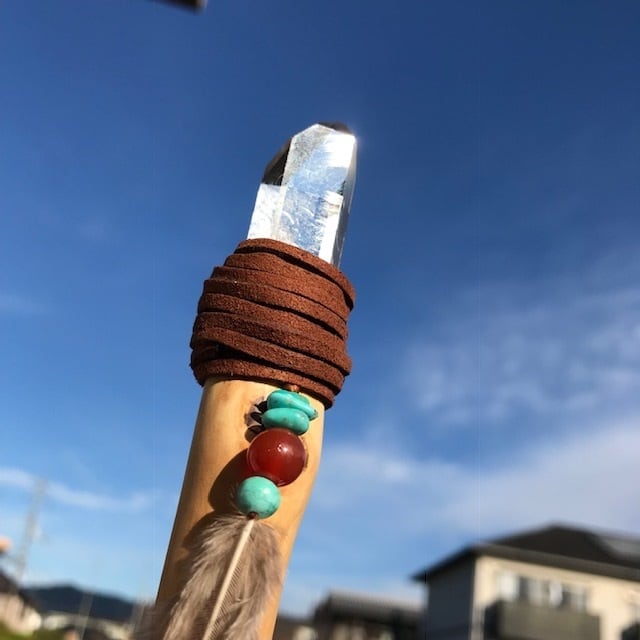 ブラジル産スターシードクォーツのポイントでウッドワンドを作りました。
