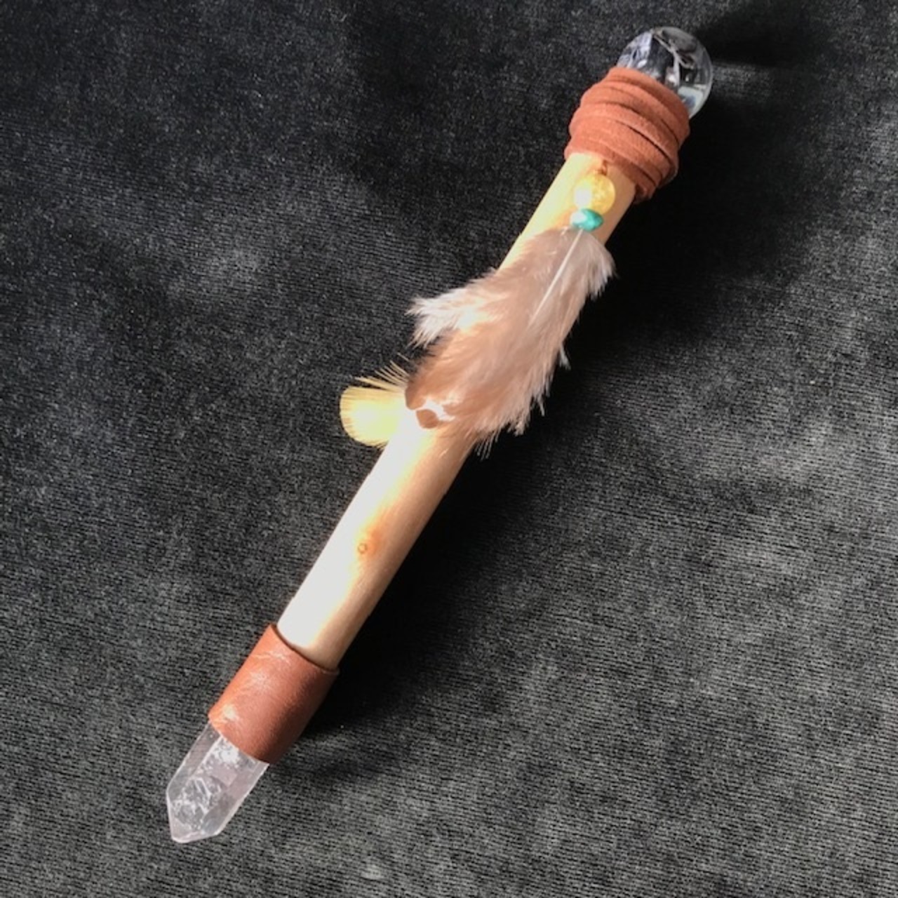 ブラジル産スターシードクォーツのポイントでウッドワンドを作りました。